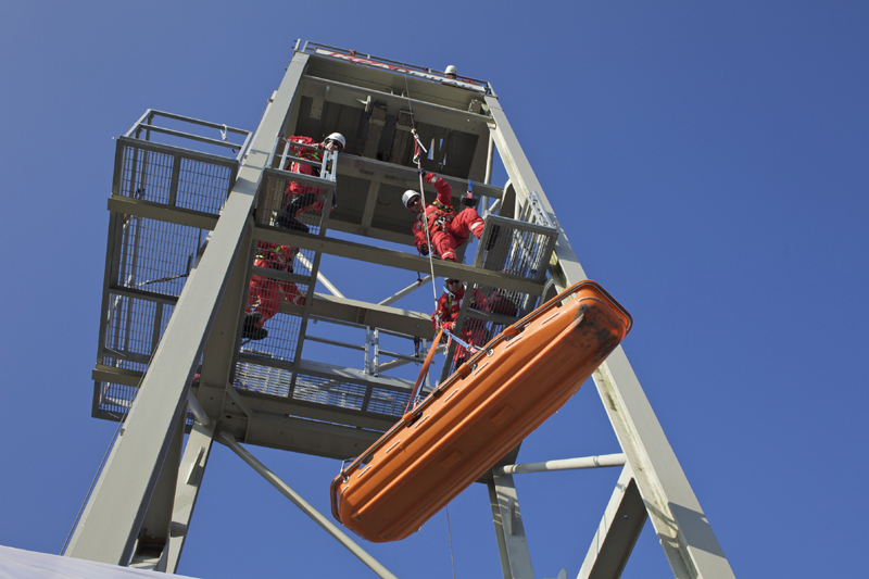 Dazu wurde auf dem Firmengelände ein 17 Meter hoher Trainingsturm errichtet und mit den notwendigen sicherheitstechnischen Einrichtungen ausgestattet. Hier können die zu erwartenden Szenarien praxisnah trainiert werden. Parallel dazu wurde ein Ausbildungskonzept entwickelt, das zusätzlich zu den Kenntnissen einschlägiger Rettungsverfahren speziell diejenigen Rettungstaktiken vermittelt, die die hohen Anforderungen der Erdöl- und Erdgas-Industrie abdecken.