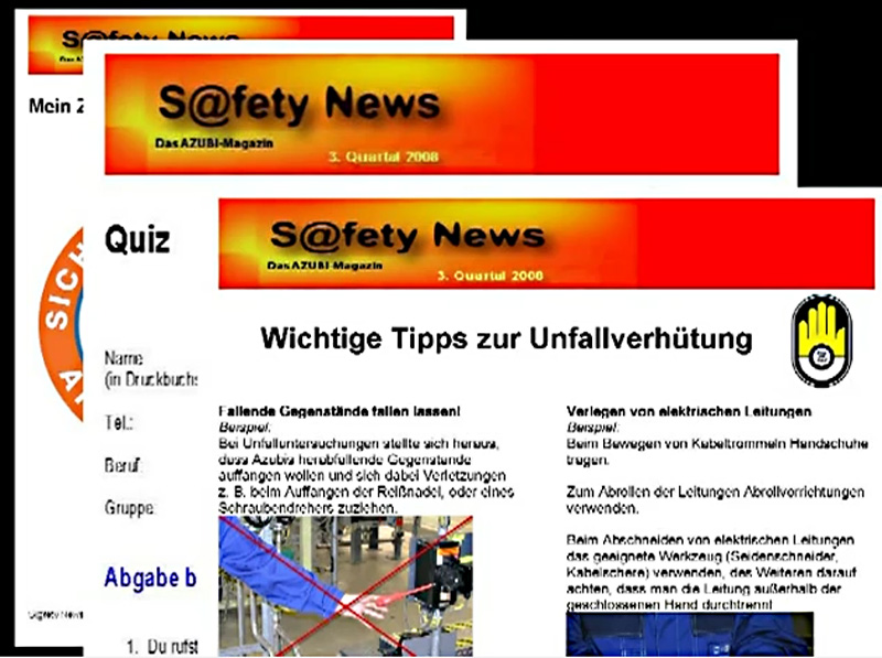 Der „S@fety-Newsletter“, der ebenfalls von Auszubildenden für Auszubildende erstellt wird, greift Unfälle und Schadensereignisse auf. Er beleuchtet vier Mal jährlich berufliche Aspekte und informiert außerdem über sicherheitsrelevante Themen aus dem privaten Umfeld.