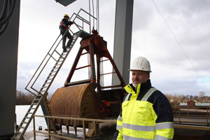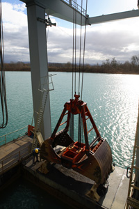 Sicher Arbeiten am Schwimmbagger-Greifer