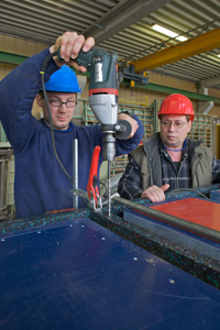 Im Unternehmen Mönninghoff GmbH & Co. KG suchte man nach Möglichkeiten zur Lärmreduzierung. Da bekannt war, dass die hohen Lärmpegel durch die vibrationsbedingten Schläge von Stahl auf Stahl erzeugt werden, entstand die Idee, Kunststoff im Formenbau zu verwenden. Da bereits in einem anderen Produktionsteil des Unternehmens Kunststoffgranulat-Pressplatten erfolgreich als Aussparungskörper im Betonfertigteilbau eingesetzt wurden, entschloss man sich aus dem gleichen Material Formen für die maschinelle Produktion von Betonwaren herzustellen. Der Erfolg ist beeindruckend: Der Lärmpegel beim Rüttelvorgang beträgt jetzt nur noch maximal 85 dB(A) gegenüber vorher 110 dB(A). In einer Reihe von Versuchen wurde darüber hinaus die Formbeständigkeit, Maßhaltigkeit und das Verschleißverhalten des Materials im Dauereinsatz erprobt. Auch hier haben die Kunststoffformen überzeugt und weitere Vorteile wie z. B. längere Standzeiten aufgezeigt.