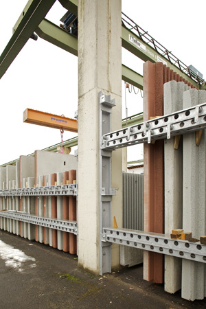 In vielen Betonwerken werden großformatige Fertigteile hergestellt, die in Länge, Höhe und Breite sehr stark variieren. Bis zum endgültigen Versand auf die Baustelle müssen die Betonelemente zwischengelagert werden. Allerdings sind die auf dem Markt erhältlichen Lagersysteme aufgrund ihrer Bauweise häufig nicht flexibel genug, um unterschiedlich große Produkte sicher lagern zu können. Damit sind die mit diesen Arbeiten betrauten Mitarbeiter einer erhöhten Unfallgefahr ausgesetzt.
