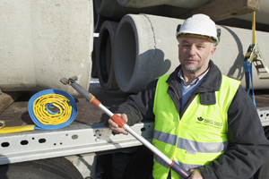 Die Gurtschoner müssen an die richtige Stelle. Mit der Teleskopstange von Franz-Xaver Kopp gelingt das auch ohne gefährliches Klettern auf der Ladung.