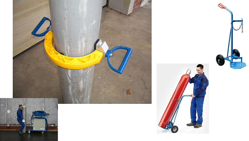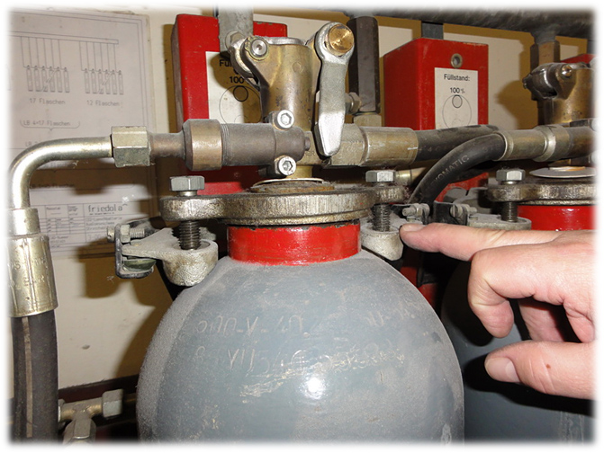 Bei der friedola Gebr. Holzapfel GmbH, Meinhard, befindet sich in einer Reihe mit 45 Gasflaschen Kohlenstoffdioxid (CO2) als Löschmittel, die jeweils in einer Wiegevorrichtung eingehängt sind. Die vollen Gasflaschen haben ein Gewicht von je 90 Kilogramm, eine relativ glatte Oberfläche aus Stahl und besitzen keine Tragevorrichtungen. Ein Austausch der Flaschen gestaltete sich bisher schwierig. Die räumlichen Verhältnisse sind beengt und der Einsatz von marktüblichen Hebevorrichtungen oder Hebehilfen kommt nicht in Frage.