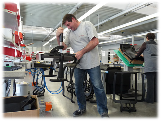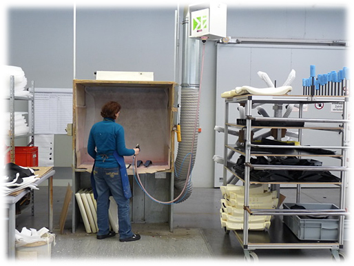 Zunächst erfolgte die Analyse der Arbeitsabläufe und der einzelnen Arbeitsplätze. Daran beteiligt waren Führungskräfte, Fachkraft für Arbeitssicherheit und Betriebsarzt. Beim Polstern der Sitzflächen und Rückenlehnen musste der Oberkörper zum Teil stark nach vorne gebeugt sein. Im Zuge der Verbesserungsmaßnahme wurde eine neue Polstervorrichtung entwickelt, die in Höhe und Neigung verstellbar ist.