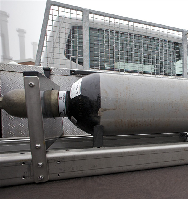 Die Wintershall Holding GmbH, Rehden, betreibt Anlagen zur Gewinnung und Speicherung von Erdgas und Erdöl. Reparaturarbeiten erfordern regelmäßig den Transport von Gasflaschen per Kleintransporter. Das Auf- und Abladen der jeweils 80 Kilogramm schweren Flaschen führen jeweils zwei Mitarbeiter unter ergonomisch ungünstigen Bedingungen durch. Die Flaschen können herunterfallen, zudem ist ein sicherer Transport nur nach aufwändiger Ladungssicherung möglich.