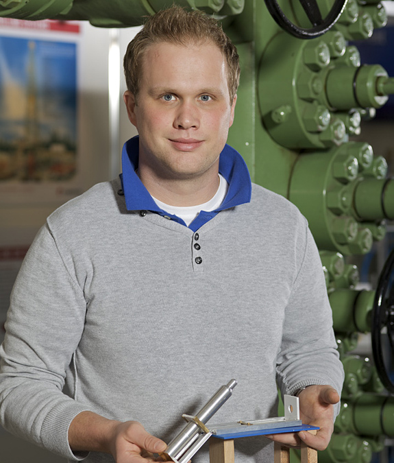 Der Förderpreis 2012 der Branche Baustoffe - Steine - Erden geht an Erich Kasten, Ralf Lampe, Rolf Neddermann und Thomas Post, die die Handhabung und den Transport schwerer Gasflaschen per Lkw deutlich ergonomischer und sicherer gestaltet haben.