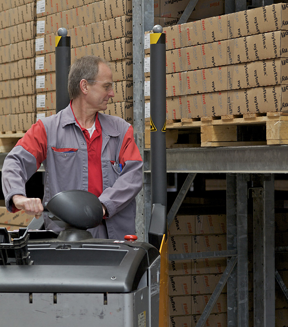 Sicherung von Nieder- oder Hochhubwagen durch Rückenschutzprofile