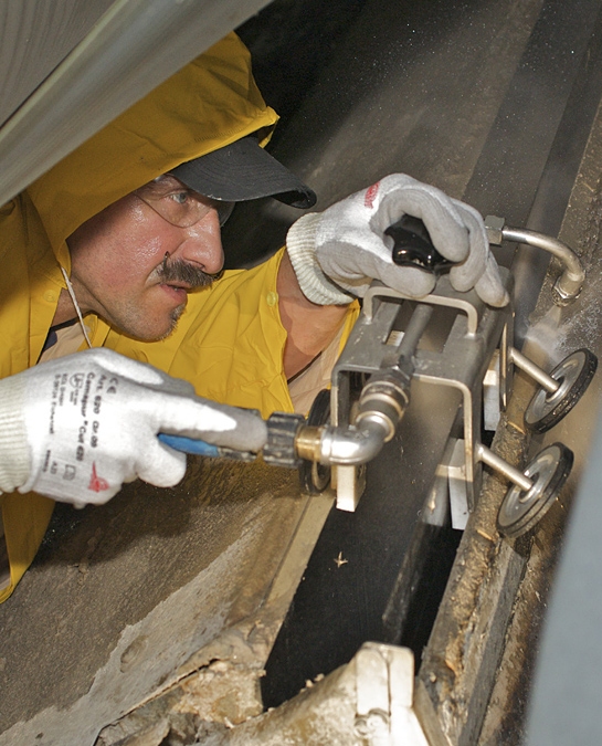 Verschmutzungen an Bespannungen, Walzen und beweglichen Anlagenteilen innerhalb einer Papiermaschine müssen zur Sicherung der Produktqualität und zum Erhalt der Maschineneffizienz vermieden oder möglichst umgehend beseitigt werden. Der schwer zugängliche Maschinenbereich im Stoffauflauf bedeutet Unfallgefahr für die Mitarbeiter während der Lamellenreinigung. Abhilfe schafft ein neues Reinigungsgerät der Smurfit Kappa GmbH, Zülpich.