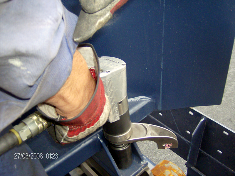 Der neue, leichter konstruierte Drehmomentschrauber arbeitet grundsätzlich mit sehr niedrigen Drehzahlen, so dass Unfälle in bisheriger Form selbst bei versehentlicher Bedienung ausgeschlossen sind. Auch Funkenschlag wird durch die niedrigere Drehzahl unterbunden, ebenso die Hand-Arm-Vibrationen minimiert. Ein Gehörschutz ist nicht mehr erforderlich, da die Lärmbelastung deutlich unter 80 dB(A) bleibt.