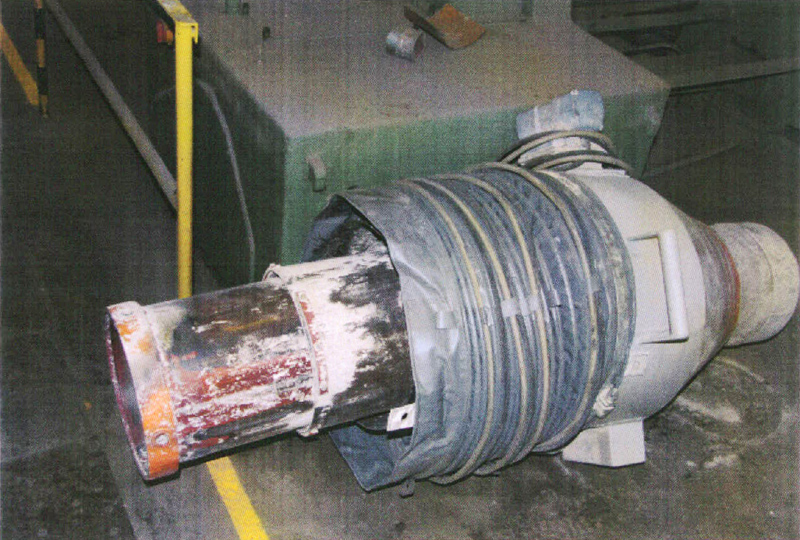 Der Verladerüssel besteht aus zwei Schläuchen, die von einem Stahlseil im Inneren angehoben werden. Während durch den inneren Schlauch das Verladegut fließt, dient der Äußere dem Absaugen des Staubes. Verstopfungen der Materialleitung wurden bisher mit Holzbrettern in einem Montagekorb beseitigt, den ein Gabelstapler anhob. Die Bretter sollten den äußeren Schlauch des Rüssels anheben. Das freigesetzte Schüttgut ergoss sich jedoch in den Staplerkorb und musste aufwändig entsorgt werden.