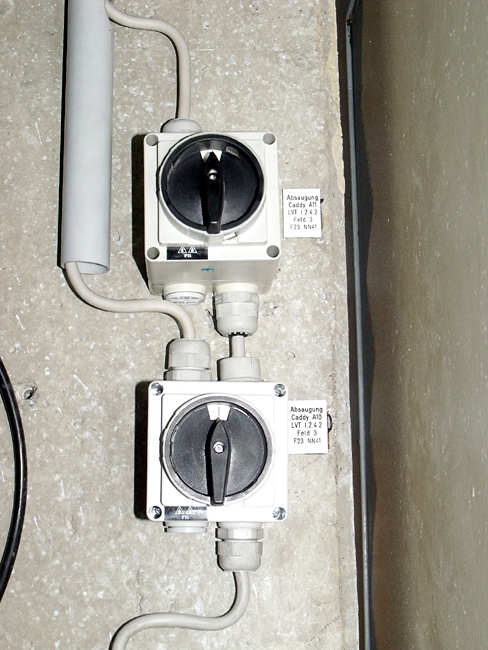 Auszubildende der mechanischen (Leitungsbau) und elektrischen (Ventilation) Abteilung konzipierten mit Unterstützung ihrer Ausbilder eine kostengünstige und flexible Lösung. Sie konstruierten aus Kanalgrundreinigungsrohren ein abluftresistentes Entlüftungssystem. In die Leitungen wurden Abluftventilatoren integriert, die den Volumenstrom der Abluft nach Bedarf ins Freie blasen.