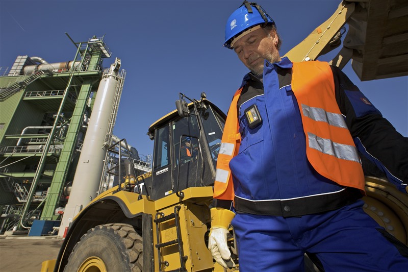 Es ist zudem möglich, den Warnbereich praxisgerecht an die betrieblichen Verhältnisse anzupassen. Tritt eine Person in diesen Warnbereich, löst sie optische und akustische Warnsignale aus, ergänzt durch Vibrationen. Die Warnung wird so auf jeden Fall wahrgenommen, ohne ständig auf Anzeigen schauen zu müssen. Das als Pilotprojekt der Technischen Universität Dortmund mit den Bayerischen Asphalt-Mischwerken entwickelte System hat bereits seine Testphase durchlaufen und ist am Markt erhältlich.