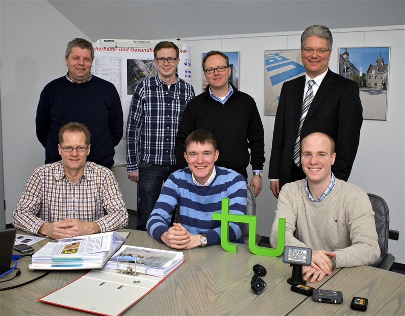 Der Förderpreis 2013 der Branche Baustoffe - Steine - Erden geht an Dr. Andreas Lewandowski, Volker Köster, Dominik Gerstel und Prof. Dr. Christian Wietfeld (Comnovo GmbH i. G., Lehrstuhl für Kommunikationsnetze an der TU Dortmund) sowie Michael Buchberger, Alfons Berger und Peter Neefs (Bayerische Asphalt-Mischwerke GmbH & Co. KG). Ihre Entwicklung sorgt für einen erheblichen Sicherheitsgewinn für Beschäftigte, die Erdbaumaschinen führen oder sich in deren Gefahrenzone aufhalten.