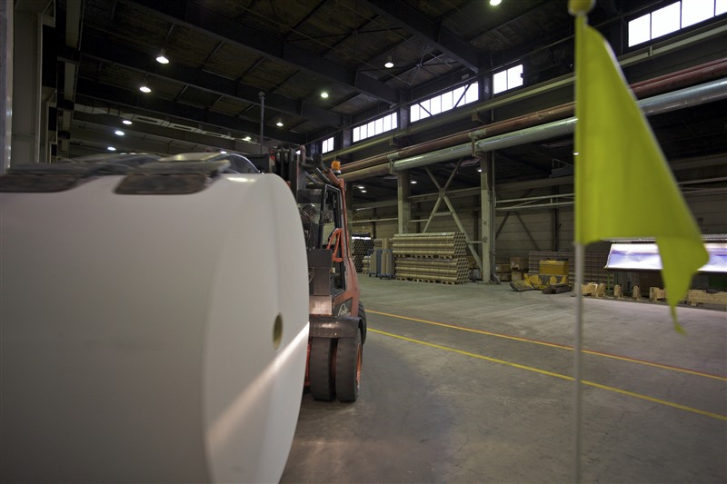 Gleichgültig ob bei Vorwärts- oder Rückwärtsfahrt – kritische Stellen im innerbetrieblichen Werkverkehr stellen insbesondere Führer von Flurförderzeugen beim Verfahren von Lasten mit großen Abmessungen vor Probleme. Der Transport großer und schwerer Rollen ist in der Papier, Pappe und Karton herstellenden Industrie Tagesgeschäft. Zwei Mitarbeiter der Kartonfabrik Buchmann GmbH, Annweiler, hatten eine Idee, über die kostengünstig und mit einfachen Mitteln zusätzliche Sicherheit im innerbetrieblichen Werkverkehr geschaffen werden konnte.