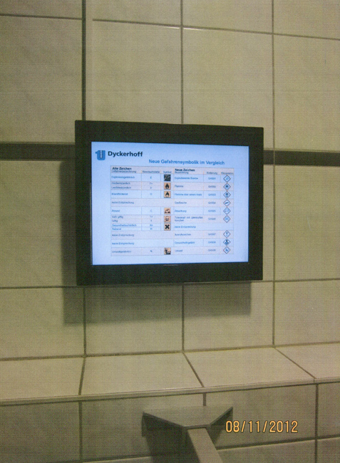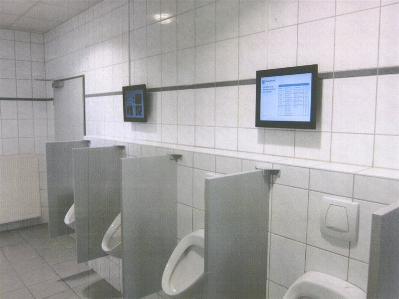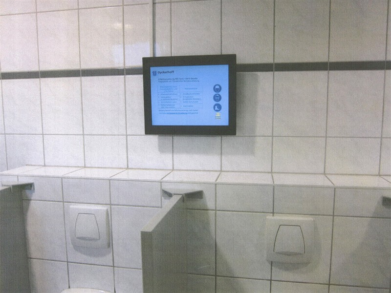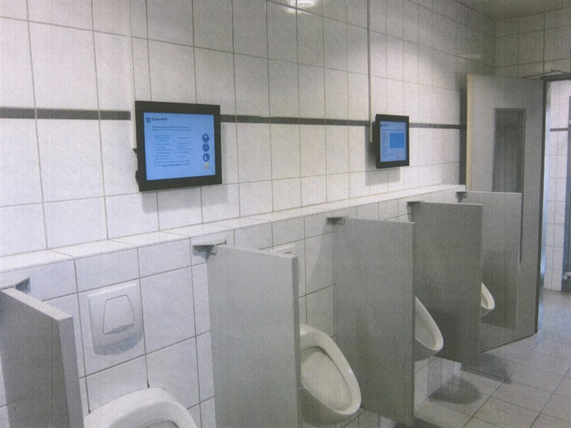 In den Toilettenräumen für die Herren wurden über den Urinalen digitale Bilderrahmen mit 15 Zoll Durchmesser aufgehängt. Diese Bilderrahmen wurden mit einprägsamen Motiven aus den Bereichen Arbeitssicherheit und Gesundheitsschutz bespielt, die in einer Endlosschleife zeitgesteuert eingeblendet werden. Die Bilderrahmen sind bewusst in den Toiletten der Herren eingesetzt worden, weil in dieser Branche bzw. auch in diesem Werk Mitarbeiterinnen eher die Ausnahme darstellen und somit fast alle Personen, die man erreichen möchte, diesen Ort regelmäßig aufsuchen.