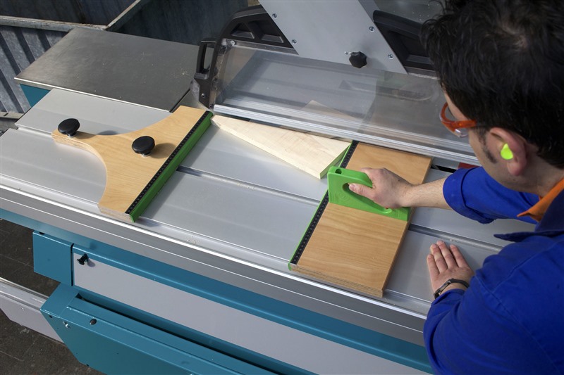 Ein Nachteil dieser Vorrichtung ist, dass ein zusätzlicher Queranschlag oder ein sogenannter Klemmschuh auf dem Schiebeschlitten installiert sein muss. Das ist unter Umständen mit erheblichem Zusatzaufwand, z. B. durch das An- und Abbauen des Anschlages verbunden. Dadurch sinkt die Akzeptanz bei der Verwendung dieser Schutzeinrichtung.