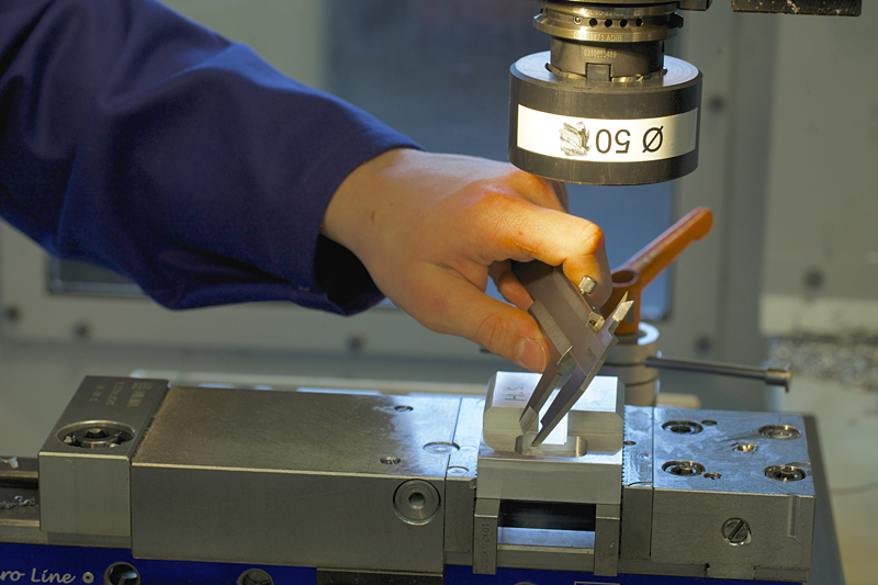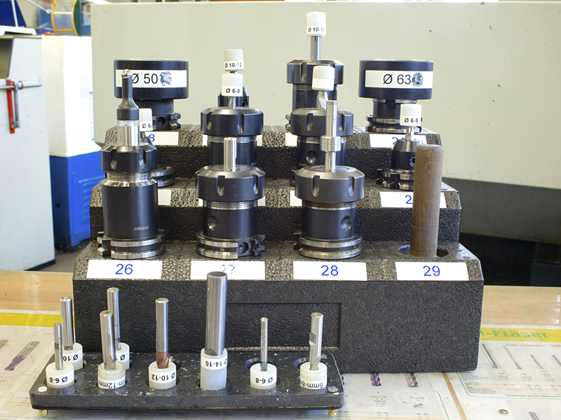 Der Auszubildende Felix Röwekämper hatte die richtige Idee, um die Ein- und Ausbauarbeiten sicherer zu machen. Er entwickelte eine neue Art individuell angepasster Schutzkappen für Fräsköpfe und eine entsprechende Ablage für deren Aufbewahrung.