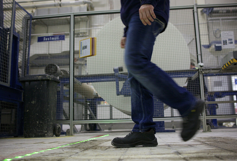 Durch verschiedene Initiativen und Aktivitäten, in die alle Beschäftigten einbezogen sind, z. B. „Be aware of Safety“ und „Safety Days“ wird das Bewusstsein für das Thema Arbeitssicherheit erhöht, werden Probleme erkannt und Lösungsvorschläge entwickelt. Zu den Themen gehören auch die Gefährdungen im innerbetrieblichen Verkehr. Hier werden ständig große Papierrollen transportiert. Am Ende der Papiermaschine wird das Papier auf sogenannte Mutterrollen aufgerollt, die bis zu zehn Tonnen wiegen können. Diese werden von der Papiermaschine weiter zur Verarbeitung transportiert. Wegen der Anordnung von Türen, Wegen und Übergängen wird dieser Bereich jedoch auch von Fußgängern passiert.