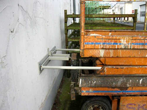 Der Wandabstandshalter verhindert ein Unterfahren des Dachzugangs und sichert außerdem einen ungefährlichen Abstand zwischen Hebebühne und Dachzugang. Damit wird ein sicherer Dachzugang für auf dem Dach erforderliche Wartungsarbeiten gewährleistet.