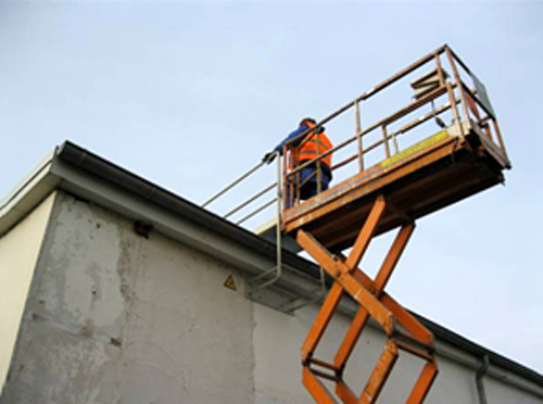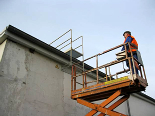 Die Führungsstangen für die transportable Hebebühne sichern die korrekte Position zum Dachzugang.