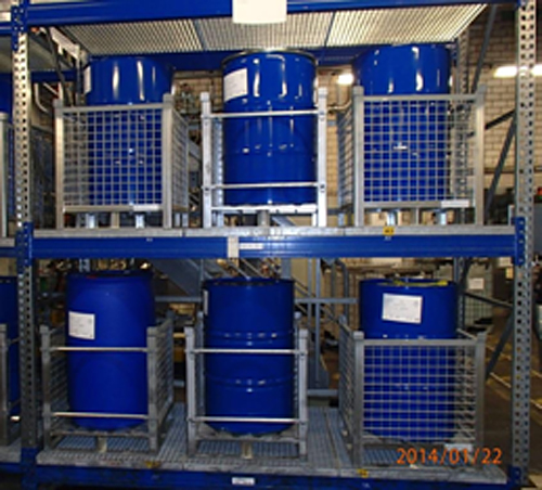Während des Lager- und Wiedereinsatzprozesses wurden die Fässer mehrfach manuell bewegt und beispielsweise mehrere Fässer auf einer Palette zusammengefasst, um Lagerraum zu sparen. Auch mussten Fässer auf Metallpaletten umgesetzt werden, um deren Inhalte anschließend in einem Wärmeschrank aufschmelzen zu können. Holzpaletten waren aufgrund der hohen Temperaturen im Wärmeschrank nicht geeignet. Die Fässer wurden stets manuell bewegt, da aus Sicht der Mitarbeiter alle betrieblich verfügbaren Geräte zu unhandlich, zu zeitintensiv und nicht ergonomisch genug erschienen. Diese Geräte wurden in der täglichen Praxis nicht akzeptiert.