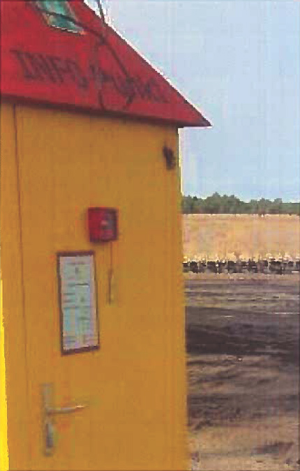 Der Info-Punkt steht standardmäßig verschlossen auf der Transportbühne am Gerät. Zu Beginn eines Baggerstillstandes wird der Info-Punkt mittels Radlader zu einem sicheren, vom Objektinstandsetzungsleiter gewählten Ort gebracht. Als Erstes werden unter Beachtung von Profilfreiheit die Stellplätze für Dienstfahrzeuge gekennzeichnet. Dann werden die aktuellen Organisations-/Reparaturpläne angebracht sowie Sicherheitskennzeichnungen aktualisiert.