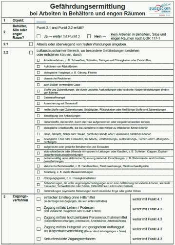 Zunächst wurde eine optimierte Mindestausstattung an Sicherheitsequipment zum Arbeiten und Retten spezifiziert. Weiterhin wurde eine Checkliste entwickelt, die als Hilfestellung für eine systematische Gefährdungsermittlung und die Erstellung der zugehörigen Betriebsanweisung je Behälter bzw. engem Raum herangezogen wird. Diese ist im Vorfeld der Arbeiten bezogen auf die Einstiegsstelle zu erstellen. In einer konkreten Arbeitssituation bildet sie dann eine wichtige Grundlage für das Ausfüllen des jeweiligen Erlaubnisscheines. Zur Vermittlung der Erkenntnisse und der künftigen Vorgehensweise durchliefen Teilnehmer aus allen Werken eine Multiplikatorenschulung. Dabei wurde zum einen die Vorgehensweise bei der Gefährdungsermittlung erläutert, zum anderen erfolgte ein praktisches Training mit den Arbeits- und Rettungsgeräten in den Anlagen des Werkes. Für alle vier Module des Sicherheitspaketes ist im firmeneigenen Intranet eine Arbeitsvorlage hinterlegt.