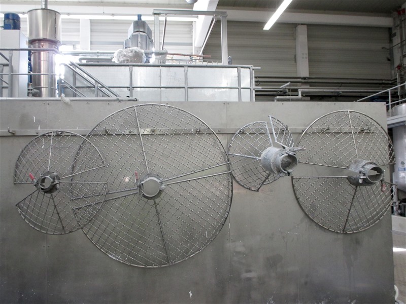 Es stehen hierzu insgesamt vier verschiedene Gittergrößen zur Verfügung, um den Rührvorgang sicher zu gestalten. Die eigentliche Innovation liegt in der trichterförmigen Geometrie des Schutzgitters, die den Eingreifwinkel in Verbindung zum Kesselrand so gestaltet, dass ein Eingreifen in Richtung Rührwelle unmöglich wird. Zudem überzeugt die Lösung durch die hohe Akzeptanz bei den Mitarbeitern und die leichte Reinigung mit dem Hochdruckreiniger.