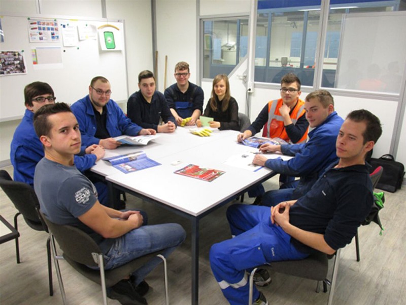 Daran beteiligten sich alle elf Auszubildende des Standortes und die Fachkraft für Arbeitssicherheit im Rahmen des monatlichen Werksunterrichtes „Let’s talk about Safety“. Ausbilder, Vorgesetzte und die Geschäftsführung befürworteten und unterstützten dieses Projekt.