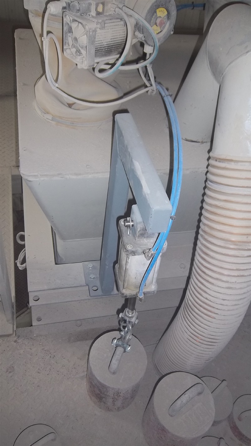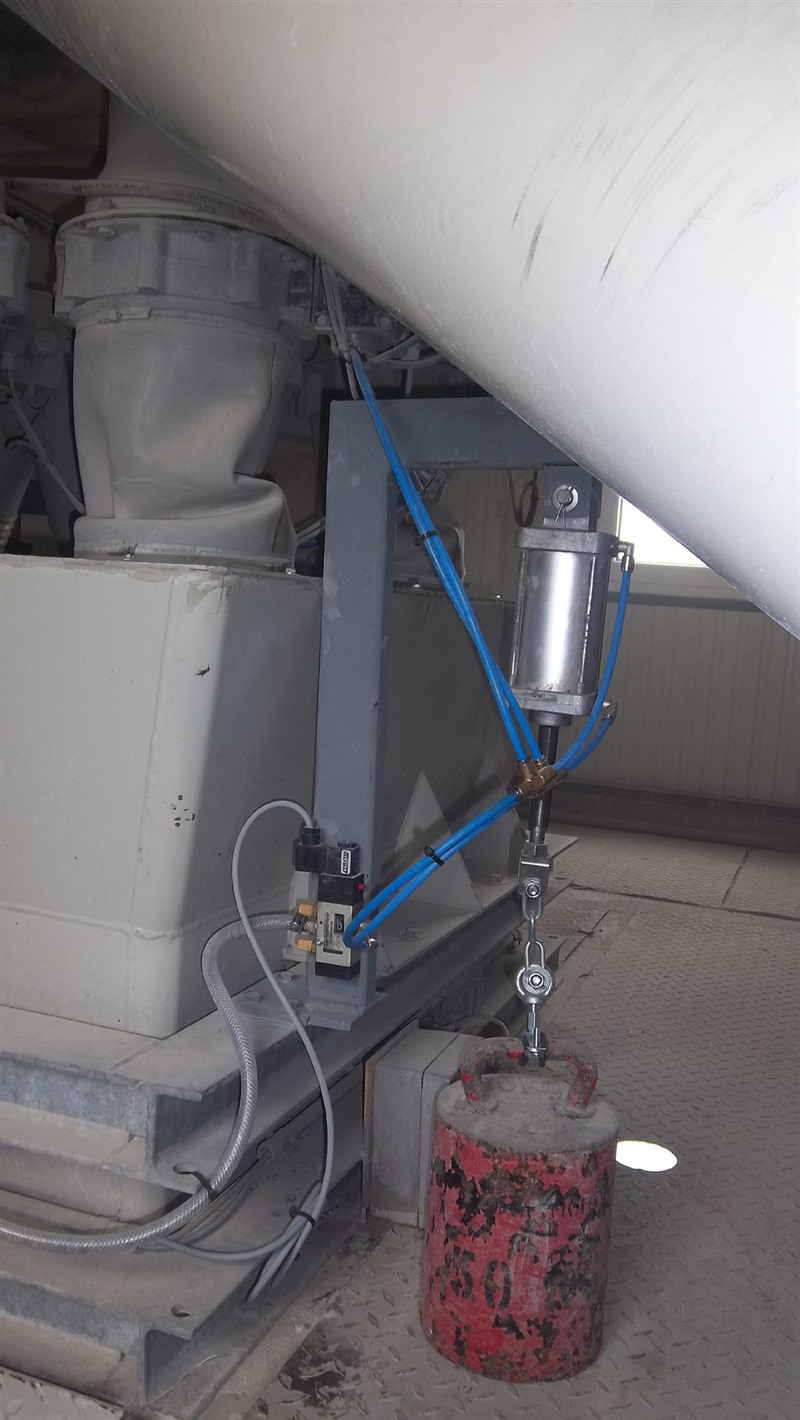 Über eine Kette/ein Seil am Zylinder sind die Gewichte am Boden stehend verbunden. Die Zylinder heben das Gewicht und können vom Mischmeister im Steuerstand angesteuert werden. Über einen Kontrollbildschirm kann die Gewichtsanzeige verfolgt werden. Über ein Formular aus dem Steuerungsprogramm werden die angezeigten Gewichte der Waagen dokumentiert und können ausgedruckt werden.