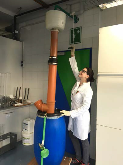 Notduschen sind in fast jedem Mitgliedsbetrieb der BG RCI anzutreffen. Anlass für die Entwicklung der Prüfvorrichtung für Not- und Augenduschen war die mindestens monatliche Durchführung der Funktionsprüfung. Wie in vielen Betrieben steht ein Mitarbeiter mit einem Eimer über Kopf unter der Dusche und versucht, das Wasser in einer ergonomisch ungeeigneten Haltung aufzufangen. Dieser Vorgang bedeutet erhöhte Unfallgefahr.