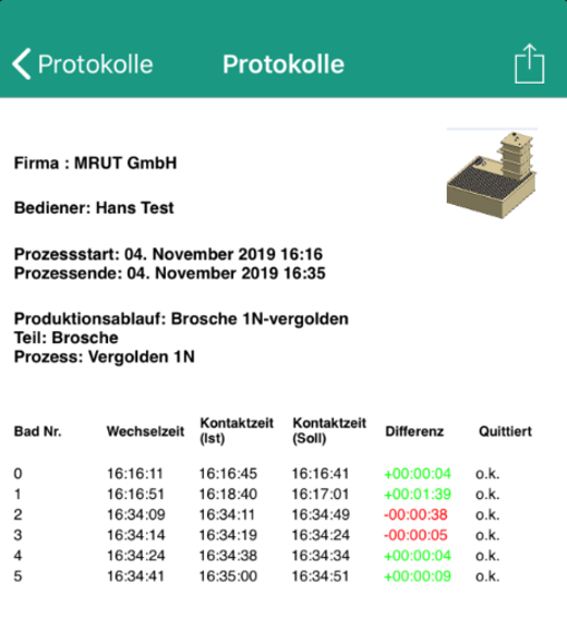 Das Ergebnis ist ein perfekter Simulationsablauf in der Galvanik, der den Benutzer sicher durch die Prozesse führt. Das Besondere an dieser App sind die sichere Führung durch die Galvanobecken und die exakten Zeitvorgaben. In der App können die Becken nummeriert und beschriftet werden. Ein Vertauschen von Becken ist quasi ausgeschlossen. Ein Überspringen von Becken, etwa durch Unkenntnis, bei dem gefährliche, teilweise tödliche Unfälle durch Blausäure-Dämpfe geschehen können, ist beim Umgang mit der App vermeidbar.
