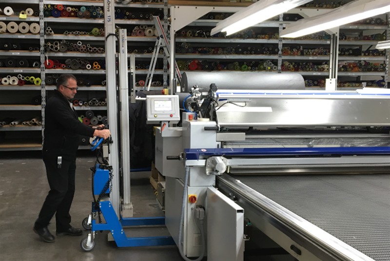 Die Beschäftigten können mit der neuen Arbeitshilfe nun deutlich ergonomischer die Stoffbahnen bewegen und transportieren, von der Entnahme bis zum Transport. Des Weiteren wurden die Absturz- und Sturzgefahr ausgeräumt und die Tätigkeit ist zudem deutlich schneller durchführbar.