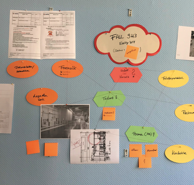 Das Team konstruierte ein realistisches Szenario aus mehreren Teilen: Etwas Schmieröl landet auf dem Boden und wird, entgegen der Arbeitsanweisung, nicht sofort beseitigt. Weitere Fehler führen schließlich zu einem schweren Arbeitsunfall. Im „Escape Room“ sollen die „Ermittler/-innen“-Teams der einzelnen Abteilungen genau diesen Arbeitsunfall verhindern. Um herauszufinden, welche Ereigniskette zu dem Unfall geführt hat, bleiben ihnen maximal 60 Minuten Zeit.