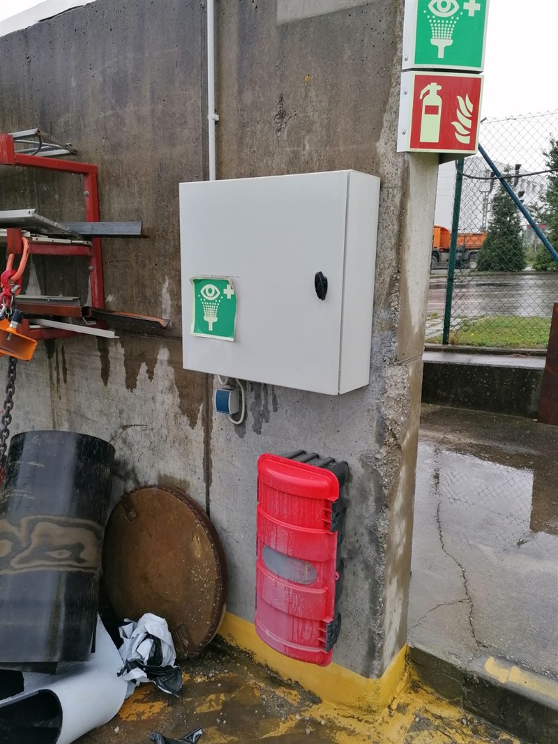 Im Bereich von Transportbetonanlagen werden Augenspülstationen vorgehalten. Ungeschützt verschmutzen die Augenspülflaschen in einigen Bereichen durch Zementstaub innerhalb kürzester Zeit zu stark, um sie verwenden zu können. Auch die bisher verwendeten Stationen aus Styropor ließen sich nach wenigen Wochen kaum noch öffnen. Bei sehr tiefen Außentemperaturen froren die Flaschen zudem häufig ein.