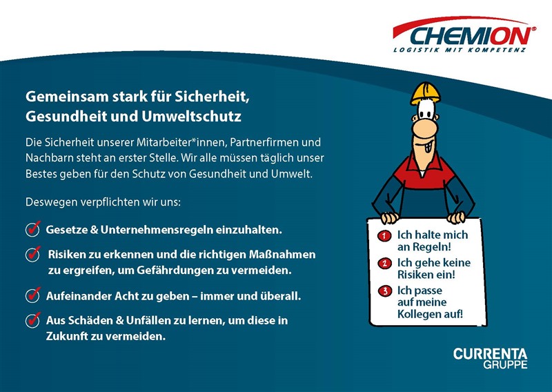 Entwicklung einer Sicherheitsvision und dreier Grundregeln, zur Weiterentwicklung der Sicherheitskultur. Der „Chemion Star“ für Beschäftigte, die sich im Arbeitsschutz besonders engagiert oder hervorgetan haben, welcher auf den Betriebsversammlungen übergeben wird. Nutzung des Maskottchens „Kalli“ für den Arbeitsschutz.