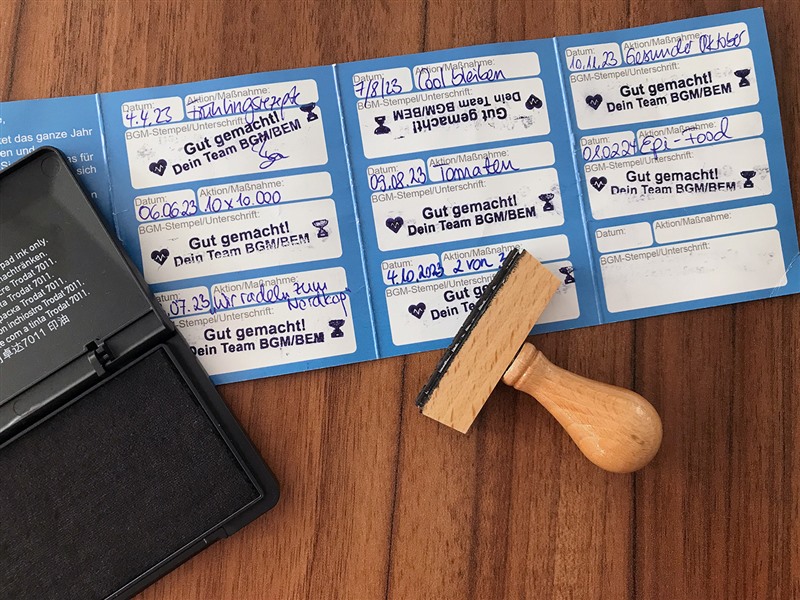 Das Betriebliche Gesundheitsmanagement bietet im Jahresverlauf Aktionen zu Ernährung, Bewegung und Entspannung an, die das gesundheitsbewusste Verhalten und die Fitness der Mitarbeitenden beruflich und privat stärken sollen. Die Angebote müssen regelmäßig, attraktiv, niedrigschwellig, bekannt und nachhaltig sein. Wer erfolgreich teilnimmt, bekommt einen Stempel in seinen Gesundheitspass.