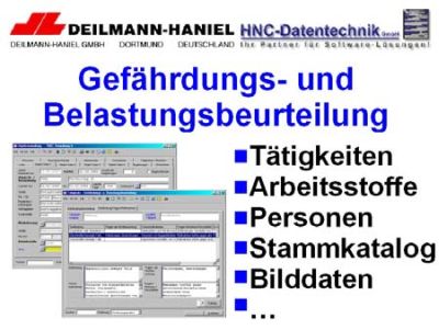 Hierzu wird ein in das Intranet des Unternehmens integriertes Programm verwendet, das in Zusammenarbeit mit dem Anbieter des Grundprogramms „AMS 2000“, der Firma HNC-Datentechnik, auf die Anforderungen des Unternehmens abgestimmt wurde. Die Software besteht aus einem Basis-Modul mit der Gefährdungs- und Belastungsbeurteilung/-analyse sowie den Modulen: Betriebsanweisung, Bildschirmarbeitsplatz, Arbeitsstoffe/Gefahrstoffe, Lärm, Unfallbearbeitung/-auswertung, Vibration, Staub, Beleuchtung und Klima.