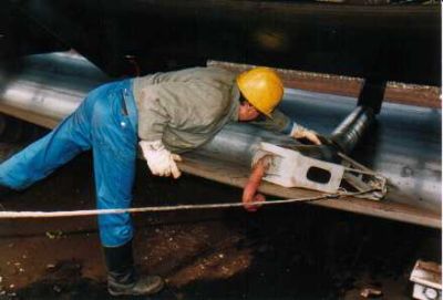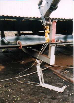 Durch die Entwicklung einer Hilfskonstruktion für mobile Erdbaugeräte kann der Neuaufbau von Bandanlagen und der Wechsel von defekten Girlandenrollen an bestehenden Anlagen sicherer, mit verringerter Belastung und mit geringerem Zeitaufwand durchgeführt werden.