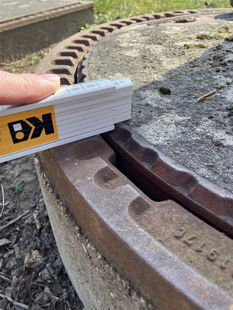 Auf dem Betriebsgelände gibt es zahlreiche Schächte, bei denen die Gefahren durch enge Räume und Absturzgefahr bestehen. Eine Kennzeichnung der Deckel von oben hat bisher keine dauerhafte Lösung geboten, da diese schnell abgetragen wurde bzw. verblasste.